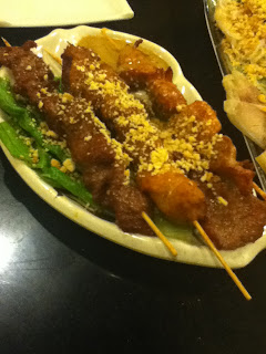大版嘅原來得四串,可以豬、牛、雞任選兩款。牛肉燒得煙煙韌韌,牛味一般,只食到好香黑椒味。豬肉反而比較好味,肉味甜甜地,又唔韌。串燒唔覺得有炭燒感覺,沙嗲醬味道正常,微微辣味,有花生粒粒,但唔算惹味。