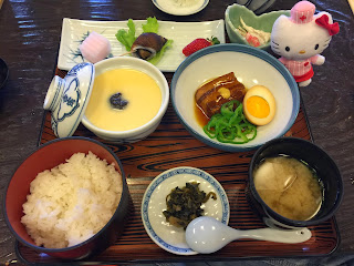 特價嘅日替定食相當豐富,包括幾款前菜、沙律、一客細茶碗蒸、麵豉湯、豚角煮配白飯,仲有兩款甜品。豚角煮已經燉到入口即化嘅程度,雖然三層肥瘦相間,但係唔覺油膩感。豬肉本身甜味好足夠,加上鹹鹹甜甜嘅醬汁,正好下飯,加一點芥末仲可以增加層次感。