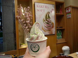 離開小店無耐,先發現左超人氣名店茶寮都路里,見到排隊排到落樓下,註定同佢無緣。最後為左完成心願,買左一個期間限定櫻花味雪糕(¥370)當捧場。雪糕有淡淡櫻花香,上面灑上綠茶粉,質感好幼滑,不錯。