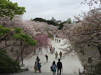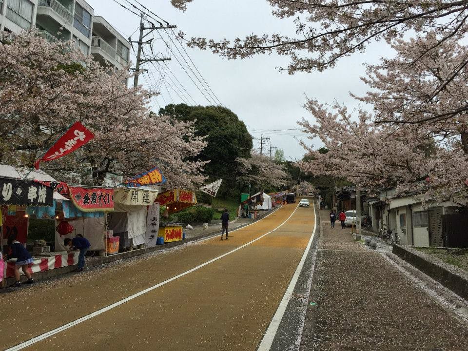 食完早餐,由天神駅搭地鐵至大濠公園。第一日已經黎過呢度,今日會改北行去西公園。出左站之後行無耐,盲見到一條大斜路,路上開滿櫻花,路旁擺左小食、遊戲攤檔。十一點未夠,時間尚早,店舖都未開。