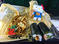 一客家常便當¥360,有前菜、蛋炒飯、炸豬扒、酸甜排骨同福袋。其實每樣都唔錯,味道夠濃,非常醒胃,好送飯。便當雖簡單,賣相同材料唔及鐵道便當咁豪華,但勝在價錢平,質素又正常。另一樣係大阪炒麵¥230,好鍾意大阪嘅炒麵嘅燒汁味道酸酸甜甜,呢客平平地但絕唔失禮,麵條夠煙韌,醬汁夠濃味,配埋紅薑相當好味。最後有兩條壽司,¥400。一條係穴子、一條係香蔥吞拿魚,似乎係幾新鮮,紫飯仲脆脆的,不錯吃。值得一提,昨晚喺超市買嘅正宗日本版CC Lemon都係超好飲,好台灣版完全唔同,根本就係一枝濃縮檸檬汁。