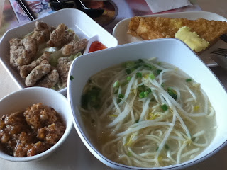 鹽酥雞扒米粉、西多士、布丁奶茶 ($28)