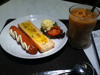 法式熱狗伴白汁碎蛋沙律配凍奶茶 ($34)