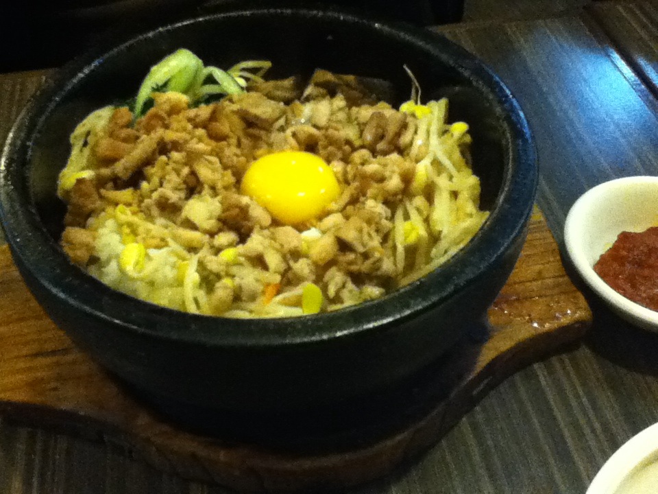 二人餐主菜有八款選擇,主要係唔同配搭嘅石頭鍋飯,仲有唔同肉類嘅鐵板飯,最後各選其一試試味。石頭鍋飯最緊要鍋夠熱辣辣,的確,由頭到尾,個石鍋仍然保持適當嘅溫度,任何時候飯都係熱辣辣。石鍋飯材料都幾豐富,雞肉碎係必定嘅,另外仲有石鍋飯常見嘅配料,好似冬菇、芽菜、紅蘿蔔絲、白菜等等,中間仲有一隻生蛋,當然唔少得韓式甜辣醬,用黎撈個痛快。韓式甜辣醬味道幾濃味,甜得黎少少辣,同其他材料一齊撈勻,變得更加惹味。其實石鍋飯只要有個好味嘅醬,個鍋夠熱,基本上已經唔會差得去邊,當然唔好忘記最底部嘅飯焦啦。
