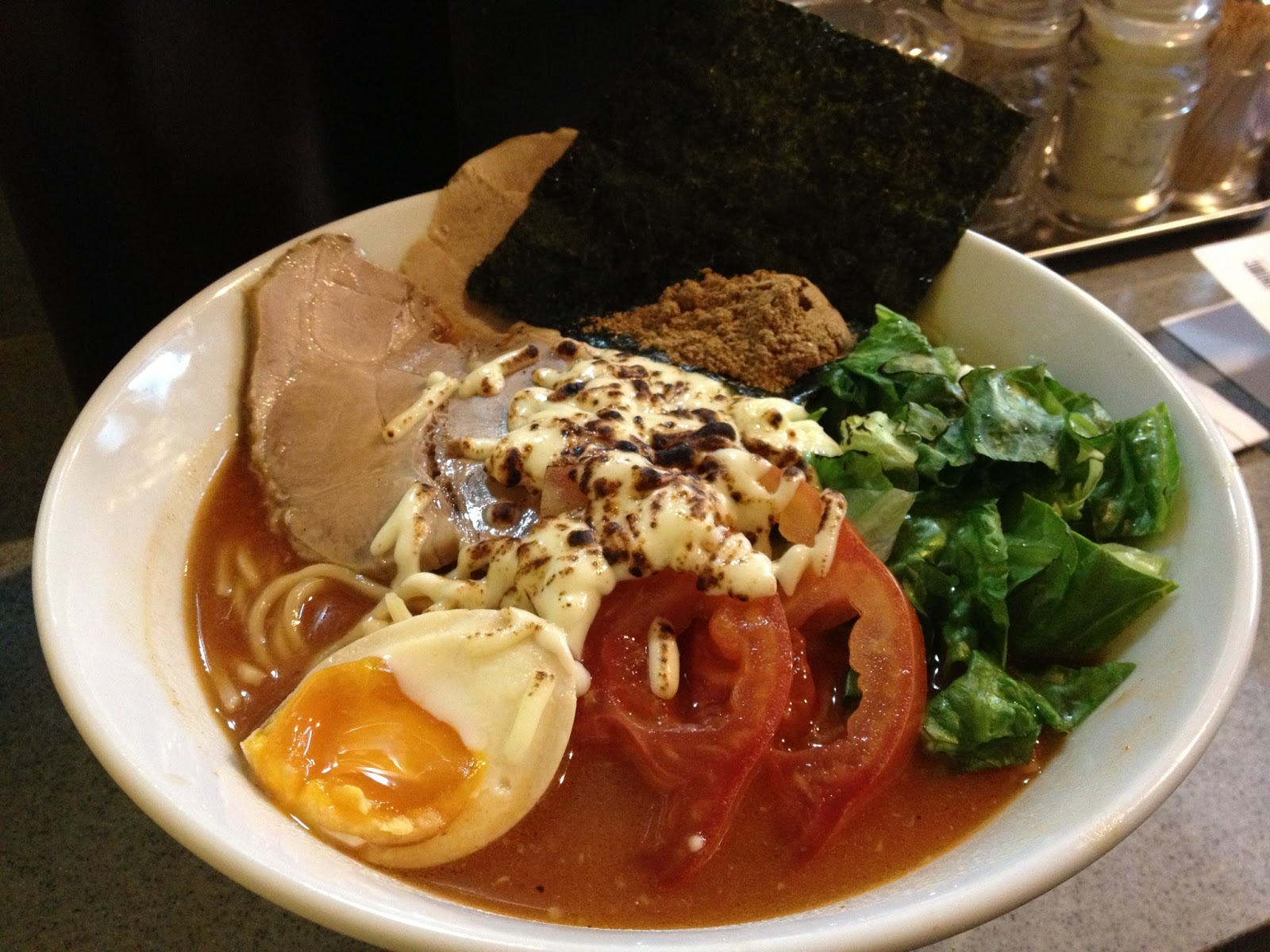 此款伊台風係創作拉麵,以豬骨湯做基本,加上蕃茄蓉、新鮮蕃茄、生菜同芝士,再喺客人面前用火槍燒融,淨係呈現手法已經好吸引。豬骨湯加上蕃茄蓉,味道香濃,豬骨味並無被蓋過,加一點酸甜,更為清爽。配上微焦嘅芝士味,實在回味無窮。