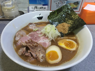 配料有兩大片叉燒、半隻溏心蛋筍、白蔥、紫菜盛住精製魚介粉。台風拉麵嘅湯底以豬骨同雞骨做基本,質地超杰身,勁厚重,入口係黏口忌廉咪嘅質感,足見真材實料,膠質極奇豐富。味道亦夠香甜濃郁,店方指湯底用上豬骨、豬頭、豬油、雞骨、豬手、雞腳等,經過二十小時以上烹煮而成,啖啖都係精華所在,實在美味。將小店精製嘅魚介粉混和,再多一種海鮮甜味,味道更具層次感,非常討喜,值得一飲而盡。拉麵選用粗身曲麵,選擇嘅偏硬程度亦做到,麵質煙韌,有咬口,粗麵更有效掛湯,每一條麵條吸盡湯汁,一流嘅配搭。知道此麵係店方其中一大堅持,用上日本產小麥,據說係八間日本製麵廠中精選出黎。兩大片叉燒亦非常討好,睇見師傅小心將叉燒切開,特地分一片邊位加上一片中間位,讓食客食到兩種口感。的確,一片叉燒係肉感較重,一片係半肥瘦,各具特色,肉味亦夠香,個人較喜歡半肥瘦較為腍滑。至於溏心蛋亦係用心之作,蛋白腍滑,充滿醬油香味,黃蛋半熟非常黏口香濃,不錯!