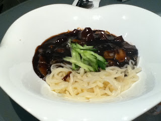 第一次食正宗韓式炸醬面,炸醬係咸咸甜甜,有啲似豉油加豆豉、麵豉嘅得意味道,但炸醬並無想像中咁濃郁。炸醬仲有唔少豬肉塊、菇類、薯仔、洋蔥等。麵條質地似烏冬,煙煙韌韌,有香甜嘅麵粉味道,質感唔錯。食炸醬麵最緊要識撈,要將所有醬料同麵撈得夠勻先至好食。
