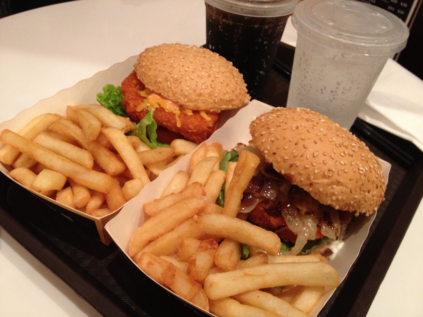 至尊炸豬排漢堡除左一塊炸豬排外,仲配上芝士,新鮮蕃茄同生菜。漢堡包面舖滿芝麻,材料一層層堆疊,賣相唔錯。暖暖地嘅麵包,入口好鬆軟有彈性,芝麻味道好香,第一個步驟已經成功。麵包之下係熱辣辣嘅炸豬排,豬排同一般炸魚柳差唔多咁厚身,溫度熱辣得令芝士溶化合為一體。炸豬排裹上薄薄一層炸粉,炸得乾脆俐落,香口唔油膩。炸皮下嘅豬排非常鬆軟,食落唔算太乾,仲有些少肉汁。食過一啖之後,坐對面嘅姚生突然彈出一句﹕「件炸蝦餅幾好食。」呢個的確係一個問題,因為你唔話俾我知,我都唔知你係豬肉。可能豬排經過零下無限度雪藏,再一百重加工,豬肉嘅本來味道已經失去晒,只淨低淡淡嘅甜味,唔睇餐牌,真係唔知佢係豬肉。可能醬汁又太過好味,酸酸咪咪嘅沙律醬再混合香濃芝士,醬汁嘅濃郁擾亂左味覺。最後剩低嘅感覺,只係一件炸得好香脆但無乜味道嘅唔知乜野漢堡。