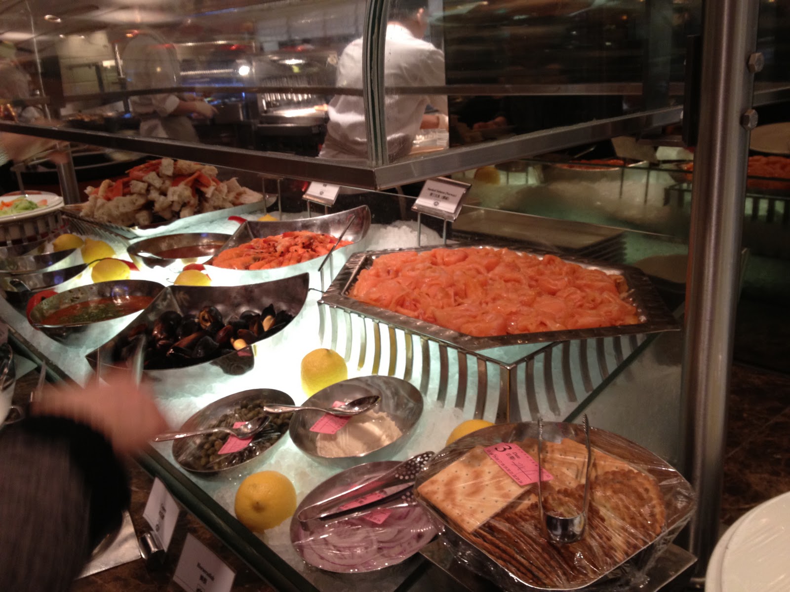 1. 煙三文魚﹕ 酒店供應一大盆任食唔嬲,煙三文魚味道唔錯,鹹味適中,可惜搵極都搵唔到合適嘅醬汁