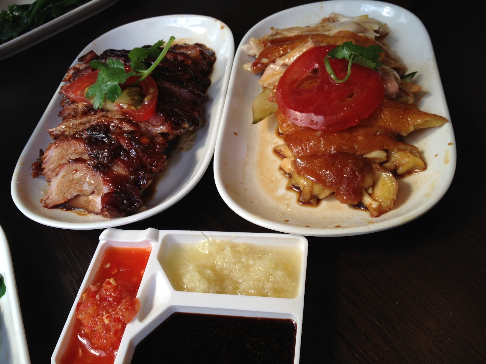 叫得做新加坡雞飯,唔食海南雞飯,不如唔好黎。最後選擇左新加坡叉燒飯套餐同燒雞飯套餐。套餐包括一個主菜、一個飯、一碟油菜,仲包埋肉骨茶或飲品,相當豐富。
