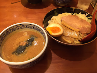 沾汁係魚介風味,湯之上有一片紫菜,仲有魚介粉。不客氣將粉撈勻試一口,豬骨湯加上魚介,魚介海味幾突出,豬骨明顯給比下去。湯汁質地非常厚,好容易掛麵,但問題就係食大麵嘅時候,沾汁會一滴不留。湯汁黎講味道係夠既,以拉麵湯底黎講算唔錯,但以沾麵湯黎,略為唔夠重口味。最大問題係湯汁溫度唔夠,入口無燙熱感覺,相信好快會被拉麵感染。