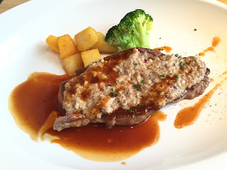 我揀左呢款西冷,賣相非常吸引,西冷大大塊上面舖滿磨菇汁。