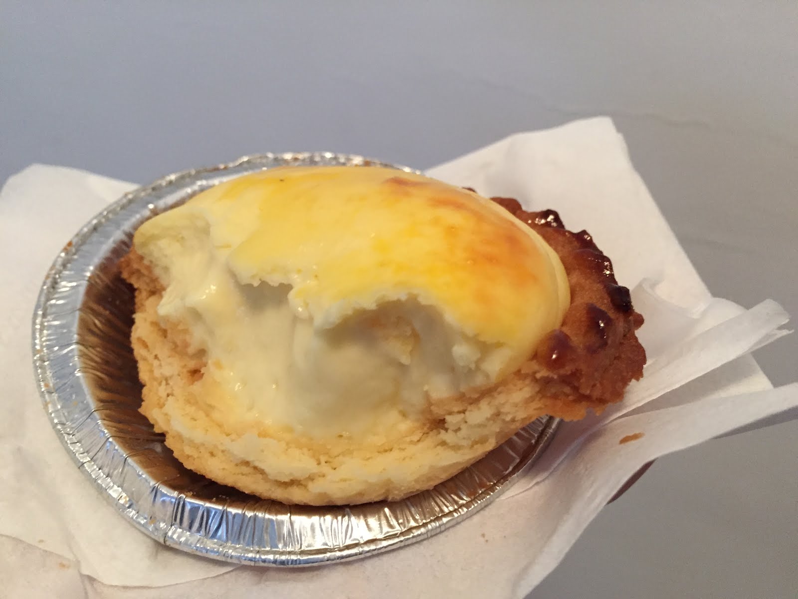 廿蚊兩個。蛋撻皮幾香幾鬆化,較為實淨香脆。芝士餡半熟,奶味重,個人較鍾意呢個。