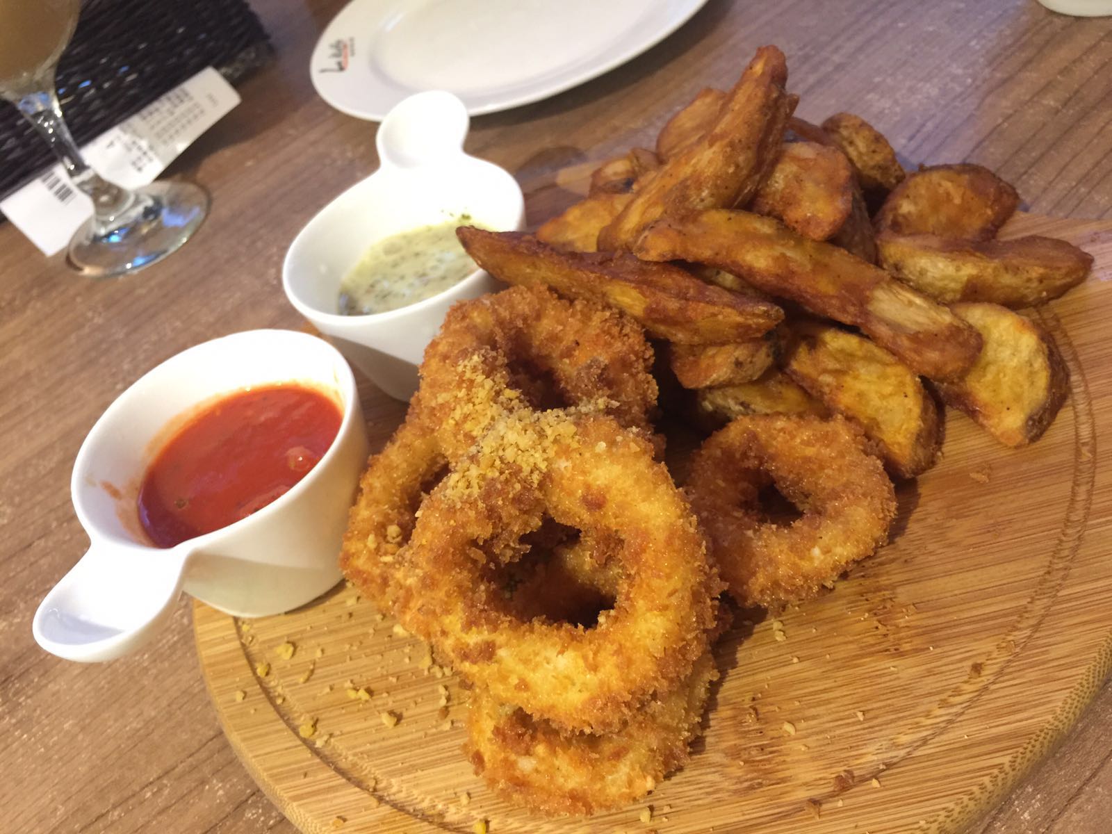 魷魚圈好鬆脆,炸粉唔厚,魷魚幾新鮮彈牙。雞翼大大隻,外皮幾脆,裡面幾juicy。辣肉腸微辣幾好味,幾薯條新鮮即炸,熱辣辣,脆卜卜。
