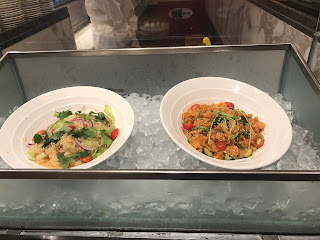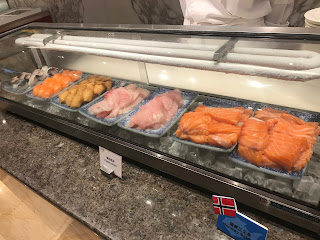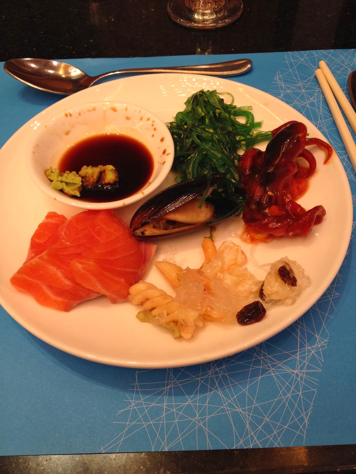 刺身、燕窩三文魚鮮果沙律、燕窩海鮮粥、芒果蝦天婦羅、芒果蟹肉批、燕窩薄餅