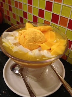 呢款白雪公主同芒果河粉差三蚊,高貴在於公主多左個芒果雪糕球。材料有椰汁粉條配芒果汁、芒果肉同雪糕。呢個最當造嘅時候食芒果一定無錯,芒果包甜包靚,鮮味十足。湯底芒果汁有少許沙沙感覺,冰涼得黎,唔會過份冰感,質地幾杰身,有非常香甜嘅芒果味,反而希望加多少少酸味,相信應該更醒神。河粉係蒟蒻、椰汁製成,質感非常滑溜,帶少許煙韌爽口,淡淡嘅椰香配芒果真係一個非常正路、又合拍嘅配搭。雪糕係一般芒果雪糕,奶味比較膩,相信如果用上芒果雪芭會更加合襯。