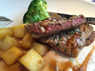 我揀左呢款西冷,賣相非常吸引,西冷大大塊上面舖滿磨菇汁。