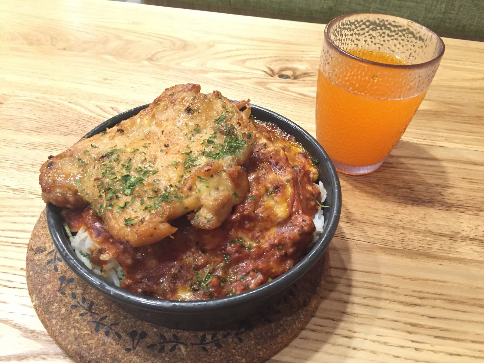 香草豬扒芝士滑蛋蓋飯 $69﹕鮮嫩嘅豬扒鋪滿喺飯面,再配合滑蛋嘅金黃光澤。豬扒嫩滑多汁,外層略帶焦香,內裡又保持住肉質嘅鮮嫩。最好食係滑蛋,細膩柔滑,入口即化,蛋味香濃,加上酸酸甜甜嘅番茄醬汁,開胃又好味。