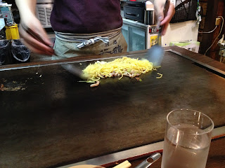 食客多數係落班嘅西裝友,正真體驗到大阪人五點半嘅生活。店員知道我地係遊客,提供左中文菜單,仲安排左識國語嘅職員幫我地落單。點左一份炒麵,加一份大阪燒豚玉。先送上炒麵,好香口,有鑊氣,麵條夠煙韌,材料有椰菜豬肉等,味道較為清爽,如果醬油可以再多啲應該會更好食!