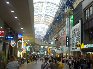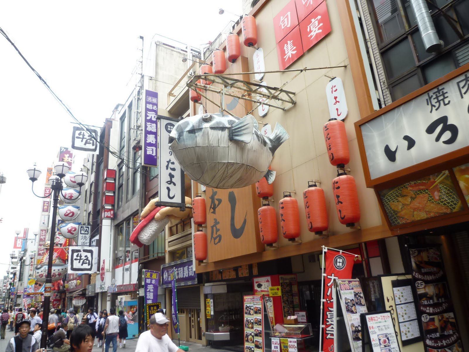 心齋橋有好多藥房、服裝店、百貨公司、電器舖,仲有好幾間零食店,瘋狂勁掃手信,買左好多章魚燒小食。