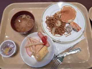落樓下食個早餐先。一個大宴會廳,又係壯觀! 自助型式任夾,有日式、洋式、日式。未有心機學習日本人食飯做早餐咁正宗,但幾鍾意食酒店嘅日式小食,好似厚燒玉子、日式炒麵都唔錯。難得日本酒店做西式早餐都算幾好,香腸真係好好味, 但pancake就麻麻了。